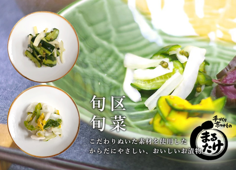 「まるたけ」のお漬けものは、京の町屋で古くから受け継がれてきた昔ながらの製法で作った食品で材料の風味をなくさぬ様、ひとつひとつを丹念に漬け込…