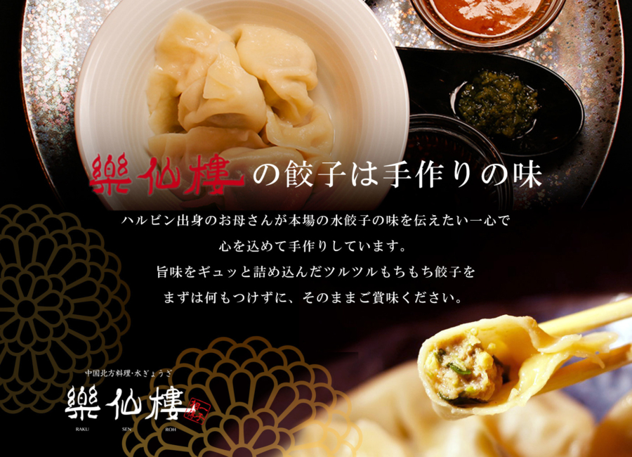 「楽仙樓」という店名は「お客様は仙人のように貴重で得難い人物。その方たちに私たちの店で楽しんで頂く場所」という思いを込めております。